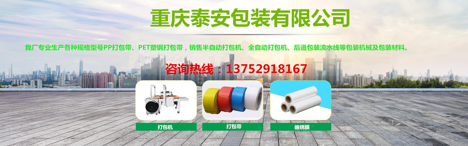 重慶泰安包裝有限公司(電話(huà):13752918167)是專(zhuān)業(yè)生產(chǎn)各種打包帶、塑鋼帶、纏繞膜、膠帶,銷(xiāo)售打包機(jī)、纏繞機(jī)、封箱機(jī)、無(wú)人化流水線(xiàn)等各種包裝機(jī)械、包裝制品、包裝材料一體化的優(yōu)秀包裝企業(yè),始終堅(jiān)持“穩(wěn)步擴(kuò)張、精益管理”的方針,堅(jiān)持“換位思考,了解客戶(hù)需求,主動(dòng)服務(wù),超越客戶(hù)期待”的服務(wù)理念,以熱忱的服務(wù)、優(yōu)良的品質(zhì)、靈活的機(jī)制、創(chuàng)新的技術(shù),向各新老客戶(hù)提供最優(yōu)質(zhì)、優(yōu)價(jià)的產(chǎn)品和服務(wù),具有對(duì)系列產(chǎn)品自主研發(fā)創(chuàng)新能力,能夠獨(dú)立根據(jù)用戶(hù)要求制版打樣。近十年來(lái)受到廣大客戶(hù)的信任,產(chǎn)品銷(xiāo)售遍及全國(guó)各大城市,與客戶(hù)形成自由平等、互利互惠的戰(zhàn)略合作關(guān)系,平均年銷(xiāo)售量2000多噸。